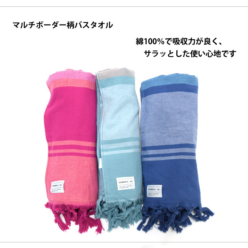 商品詳細 O'NEILL/オニール フリンジバスタオル マルチボーダー柄のバスタオルです 綿100%素材で吸収力◎ 海水浴やプールの他にジムやレジャー、お風呂上りにもGood☆