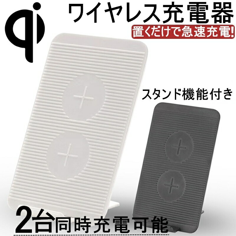 Qiワイヤレス充電器 折畳式ワイヤレス充電器 軽量 ワイヤレスチャージャー 無線充電器 スタンド機能付き 置くだけ急速充電 2台同時充電可能 滑り止めデザイン スマホ保護 シンプル iPhone XS Max iPhone XR ゆうパケット 送料無料