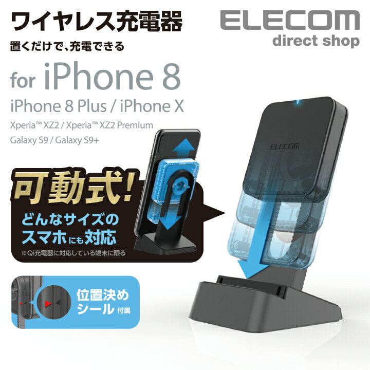 エレコム Qi規格対応 ワイヤレス充電器 (5W・スタンドタイプ) コイル可動式 スタンドタイプ チー スマホ スマートフォン ブラック W-QS03BK