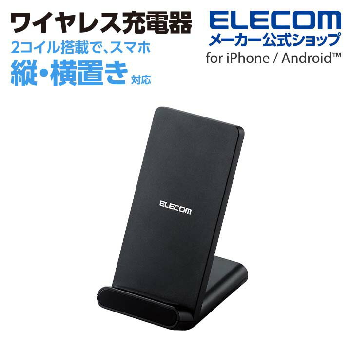 エレコム Qi規格対応ワイヤレス充電器 5W 2枚コイル スタンド タイプ ワイヤレス 充電器 チー 充電 スマホ ブラック W-QS05BK