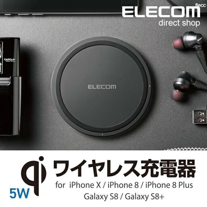 エレコム Qi規格対応 ワイヤレス充電器 iPhoneX/8/8Plus Galaxy S9/S8対応 5W ワイヤレス 充電器 ブラック W-QA03XBK