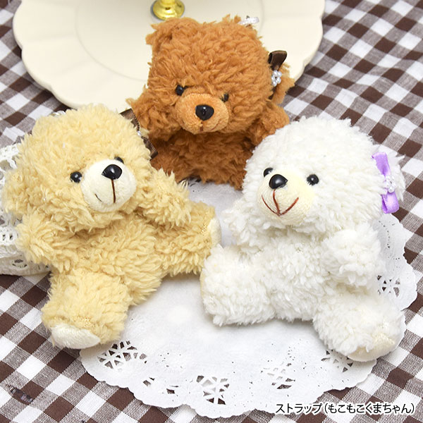 商品名 ストラップ(もこもこくまちゃん) (ST-059) STAFFコメント ふわふわな肌触りがキュート!かわいいリボンを付けたくまちゃんストラップ。