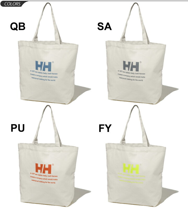 ◆ 商品詳細情報 ◆ ブランド ヘリーハンセン【HELLY HANSEN】 商品番号 HY91732 カラー (FY)フラッシュイエロー (PU)パンプキン (QB)クワイエットブルー (SA)セージ サイズ 400×350×150mm(ハンドル全長60) 素材 コットンキャンバス(綿100%) 機能・仕様 内側に2つのポケット付き。