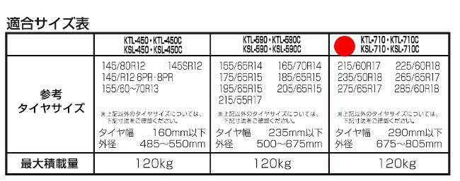 ●商品サイズ(約):幅710×奥行450×高さ1440mm ●重量:5330g ●収納の目安:大型ミニバン・SUV用タイヤ(4本) ●材質 パイプ:塩化ビニル樹脂被覆鋼管スチールパイプ ジョイントパーツ:ABS樹脂、ポリアセタール ●耐荷重:120kg タイヤラック(KTL-450/小型車用タイヤ4本)はコチラ タイヤラック(KTL-590/普通自動車用タイヤ4本)はコチラ★